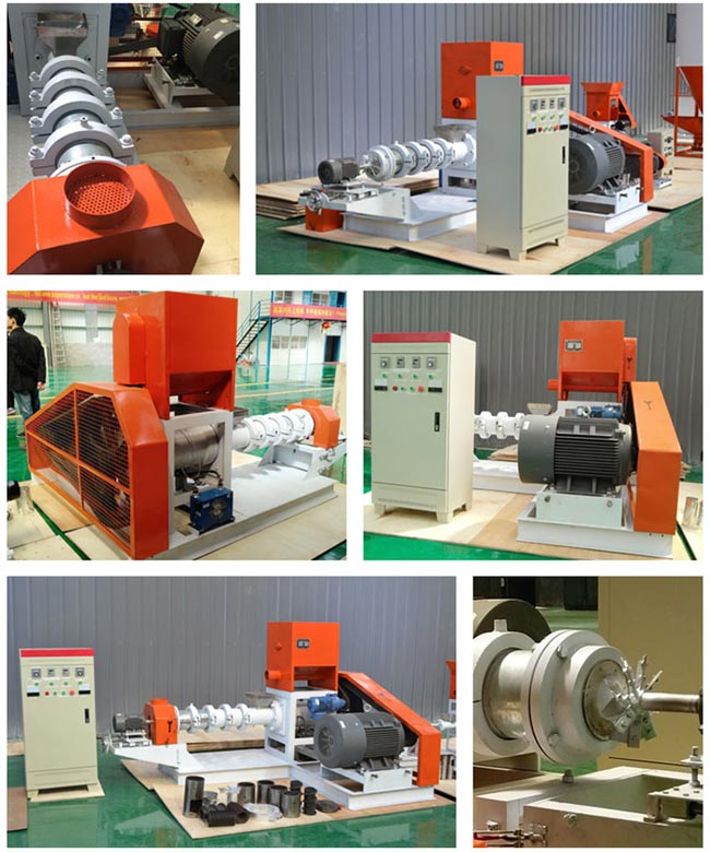 Food for fishes always contains rich crude protein, but the crude protein in the food is hard to digest for the fish. After being processed by the fish feed pellet extruder, the feed can be easy to digest. Similar with wet type fish feed extruder, dry type also uses alloy steel. Dry type fish feed extruder is suitable for small- or medium-scale fish farms and fish feed industry, for processing shrimp feed, prawn feed, floating fish feed, sinking fish feed pellets and pet feed pellet.